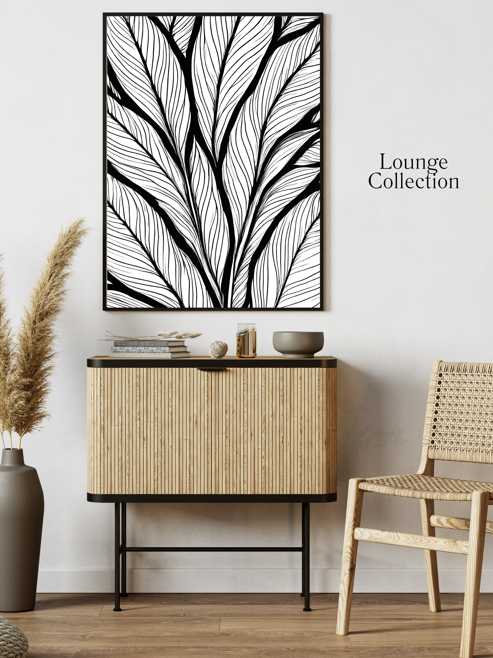 "Abstract Veins" channels the quiet complexity of nature through flowing, vein-like forms rendered in bold black and white. This piece merges organic structure with abstract minimalism, making it a powerful yet understated addition to any modern interior.