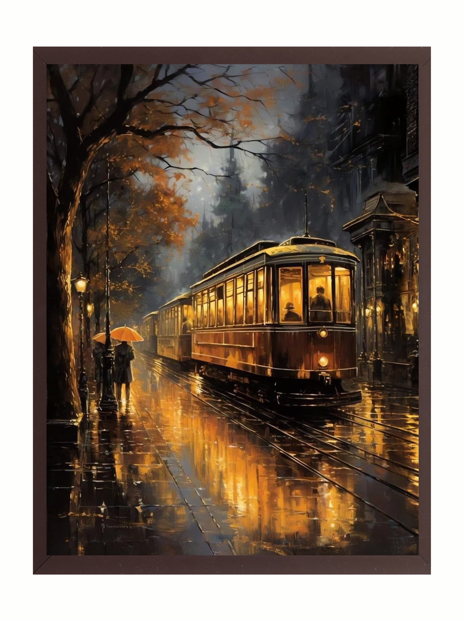 Bask in the warmth of "Golden Hour Echoes," a captivating duo of artworks that transport you to quiet, rain-soaked streets glowing under autumn skies. Each piece tells a story of stillness and solitude — where golden reflections meet wandering souls beneath bare trees and vintage streetlamps. Perfect for those who appreciate atmospheric cityscapes rich in light, texture, and emotion.