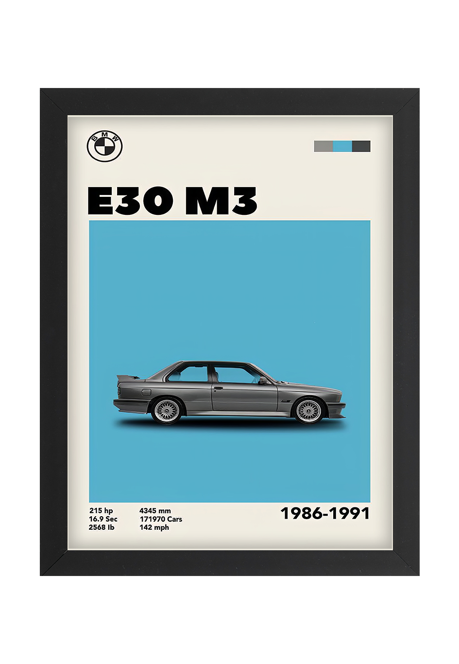 This vintage car poster frame is the perfect addition to any car enthusiast's collection! With its high-quality print and sleek design, it will transport you back in time to the iconic BMW E30 M3. Display it proudly and relive the glory days of this legendary car.