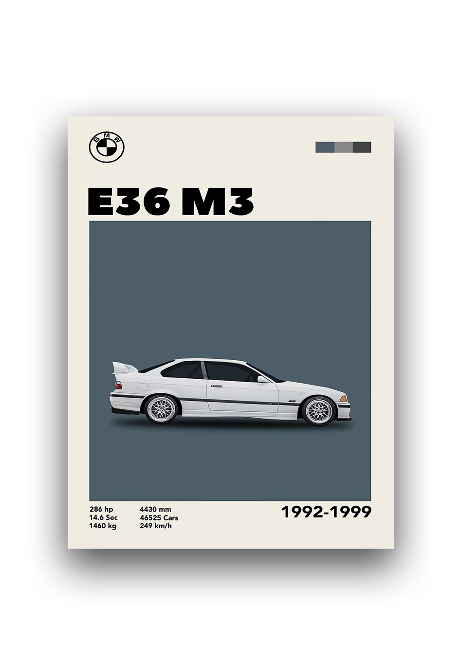 Transform your space with this vintage BMW - E36 M3 car poster frame. Perfect for car enthusiasts and vintage lovers alike, this frame adds a touch of nostalgia and style to any room. Showcase your love for classic cars with this unique and eye-catching piece.