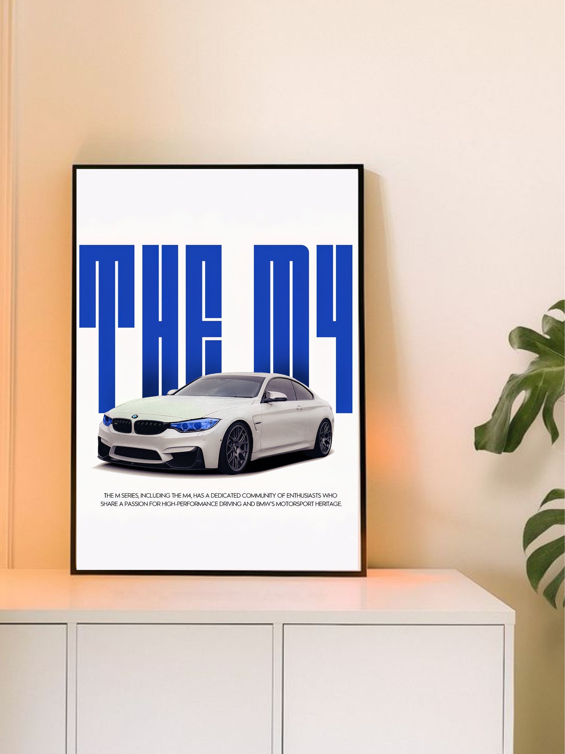 Upgrade your living space with the sleek and sophisticated BMW M4. Our premium quality glass frame and wall frames add a touch of luxury and style to any room. Elevate your home decor and impress with the iconic branding of BMW. Rev up your space with the M4 today!