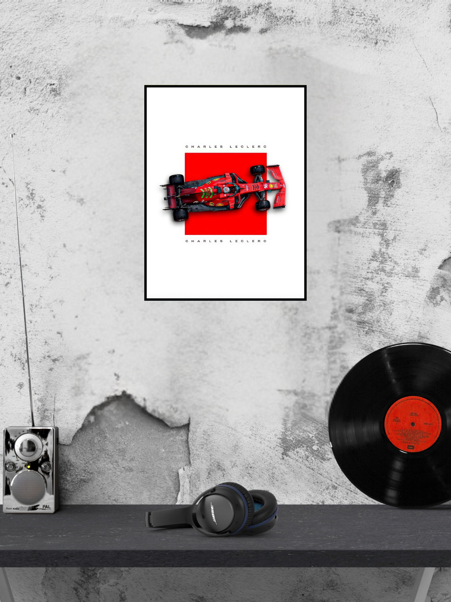 Elevate your race car fanaticism with our Charles Leclerc red car poster frame. This sleek and stylish frame showcases the iconic Charles Leclerc and will surely add a touch of excitement to any room. Show off your passion for the sport with this must-have piece!