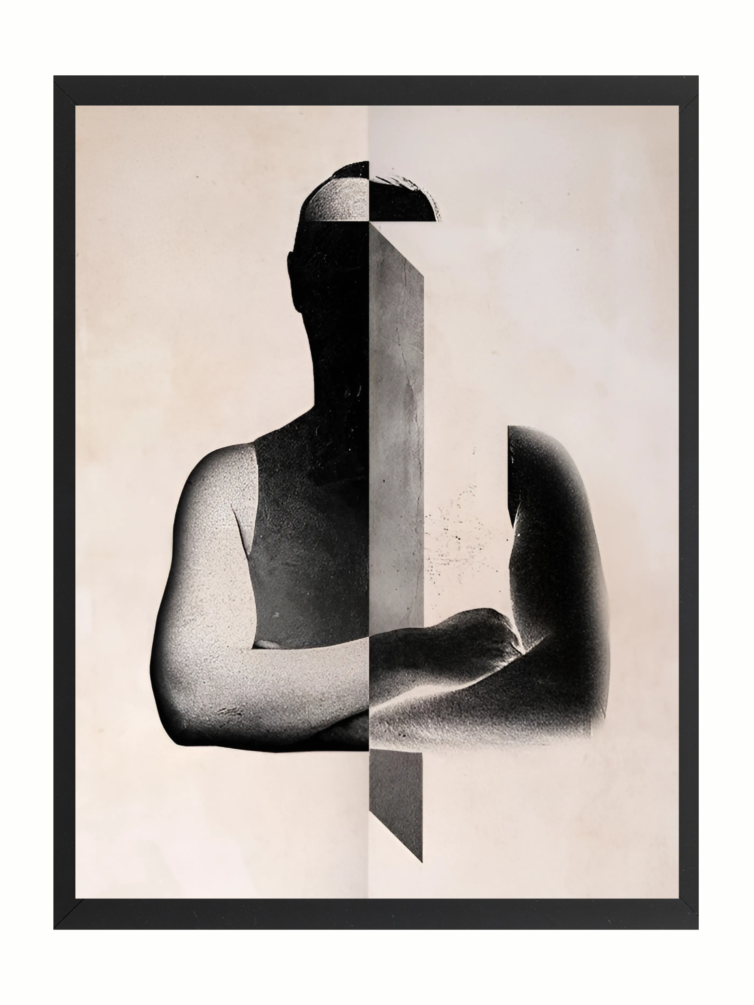 "Fragmented Reflections" captures the interplay of light and shadow, form and void. The first piece deconstructs the human body into geometric fragments, evoking a sense of self-exploration and the fragmented nature of identity. The second piece contrasts two minimalist figures—one light and one dark—symbolizing balance and duality. Together, these works create a powerful narrative of contrasting forces, offering a bold and thought-provoking statement for any modern space. Perfect for those who appreciate art that challenges perception and embraces the complexities of human existence.