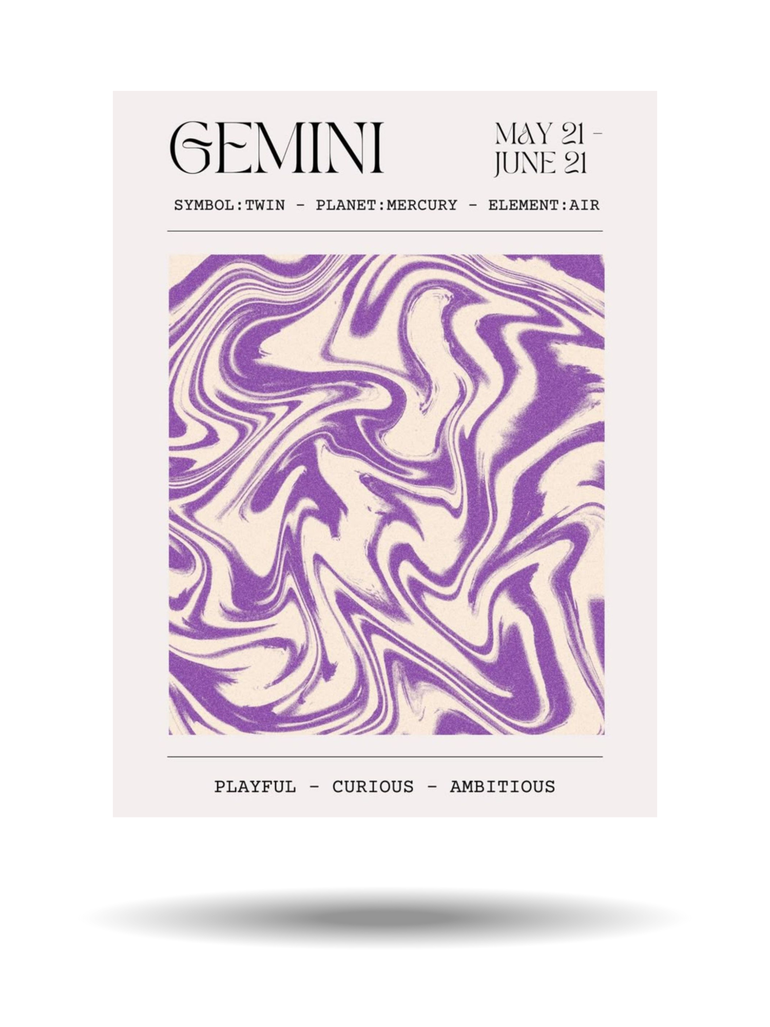 Unleash your inner star with Gemini, a stunning zodiac sign poster frame. Perfect for adding a touch of personality to any room. Show off your astrological sign and inspire others with this unique and eye-catching piece.
