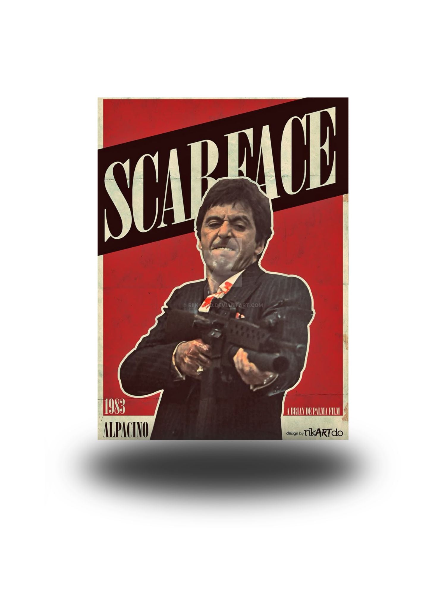 Scarface is a tale of raw ambition, ruthless power, and the cost of chasing the American Dream. This frame immortalizes Tony Montana in all his unapologetic glory — from the blinding white suit to the smoking gun, it’s a visual tribute to excess, grit, and cinematic legacy