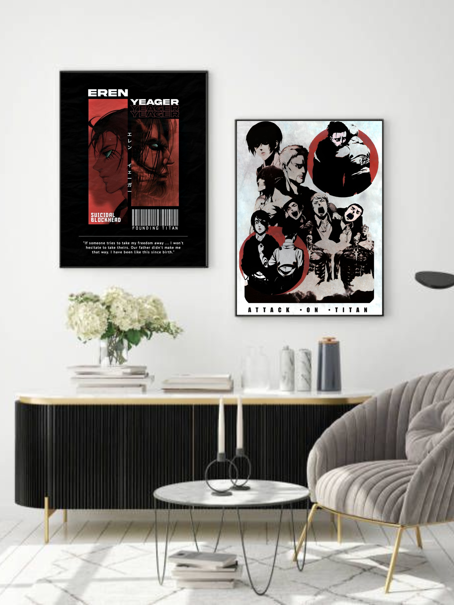 This exclusive Velvetone two-frame bundle captures the duality of Eren Yeager — from the determined scout fighting for freedom, to the feared force rewriting the world. These prints trace his evolution across the series, offering a powerful tribute to one of anime’s most complex protagonists.