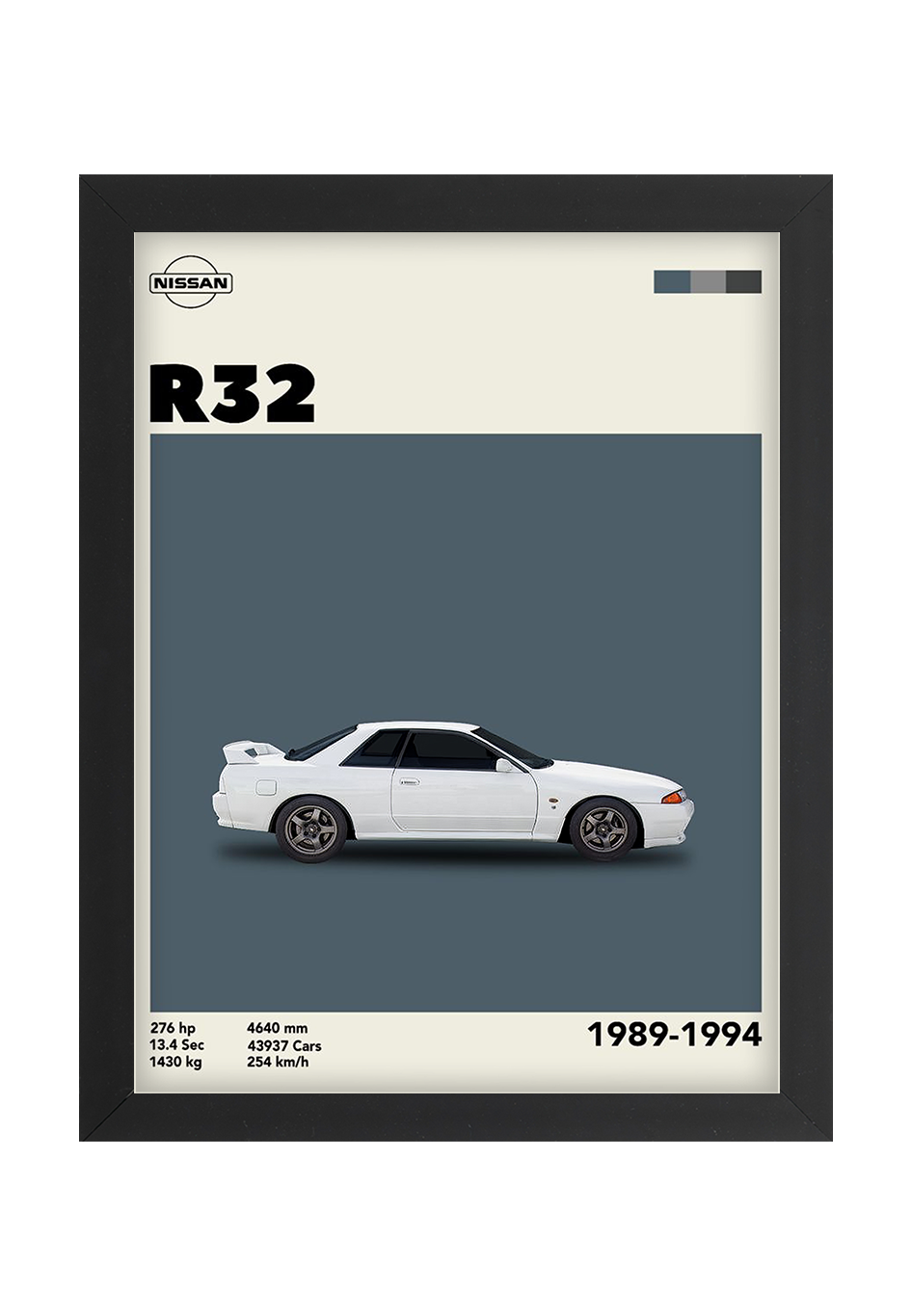 Enhance your home decor with this vintage car poster frame featuring the iconic Nissan R32. Relive the glory days with this stunning piece that captures the essence of the classic vehicle. Perfect for car enthusiasts and collectors alike, this frame adds a touch of nostalgia and style to any room.