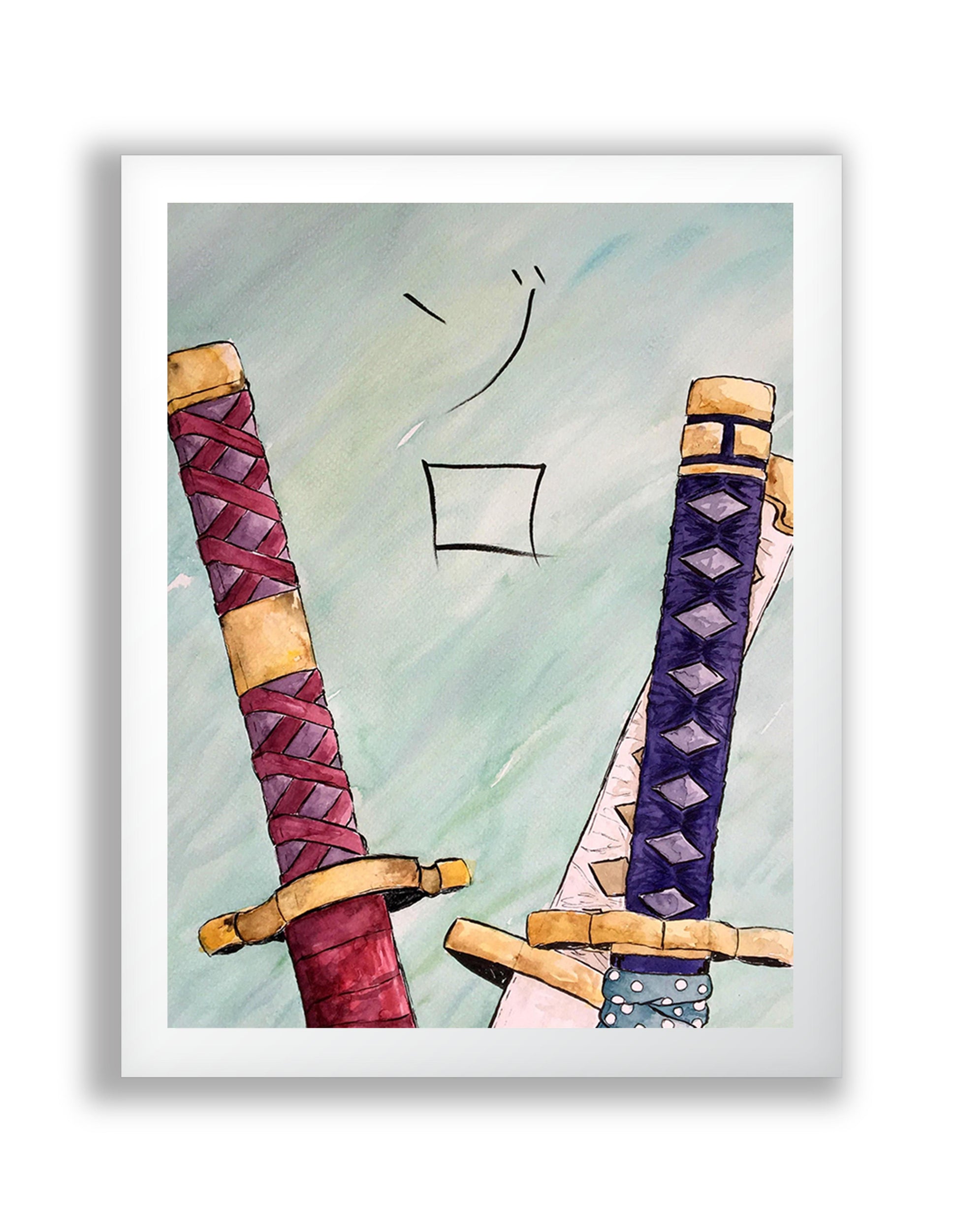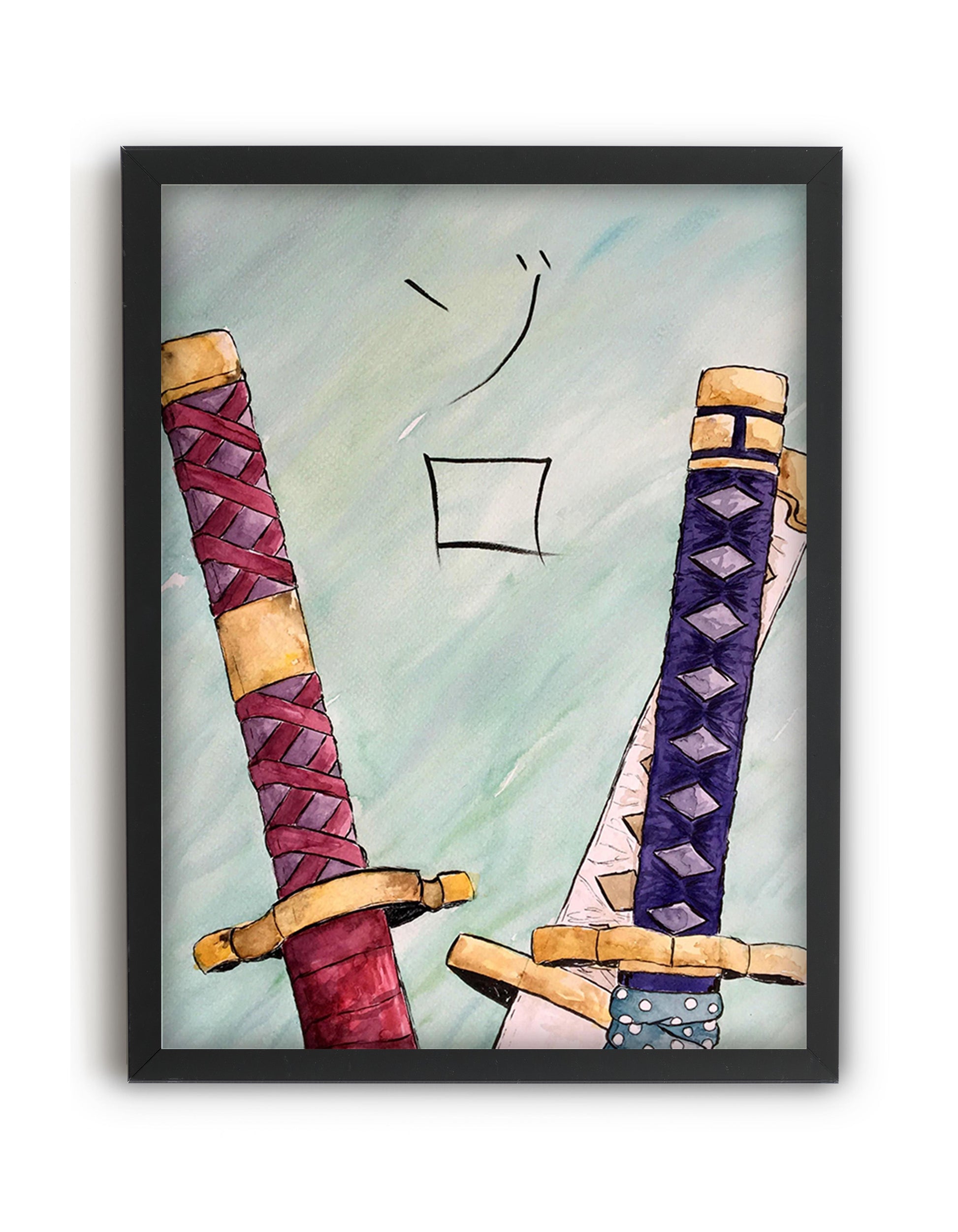 Transform your space into the world of One Piece with the iconic Zoro's Katanas poster. Featuring the three swords wielded by the skilled swordsman Roronoa Zoro, this poster is a must-have for any fan of the popular anime series. The detail and vibrant colors of the katanas will transport you to the high seas and make you feel like a part of the Straw Hat Pirate crew. Hang this poster on your wall and show off your love for One Piece and the legendary swordsman Zoro.